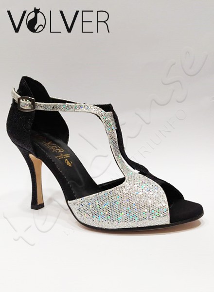 Ballroom Maglina Nera Splendor Argento Tacco 90B *OFFERTA* Suola Cuoio