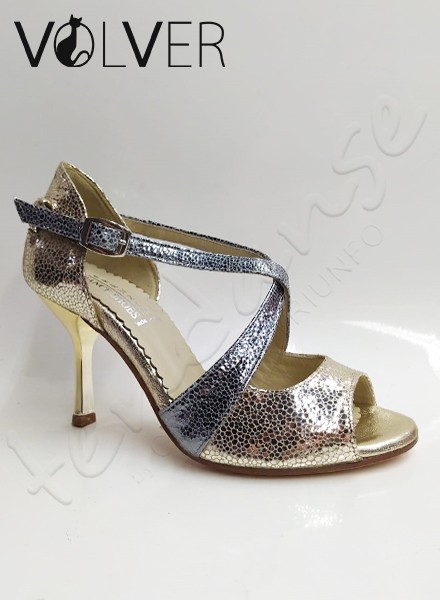 Scarpe da Ballo Donna Stampato Platino & Argento Suola Cuoio Tacco 80S Spruzzato