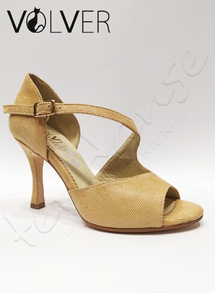 Scarpe da Ballo Lame Beige Cuoio Tacco 90B